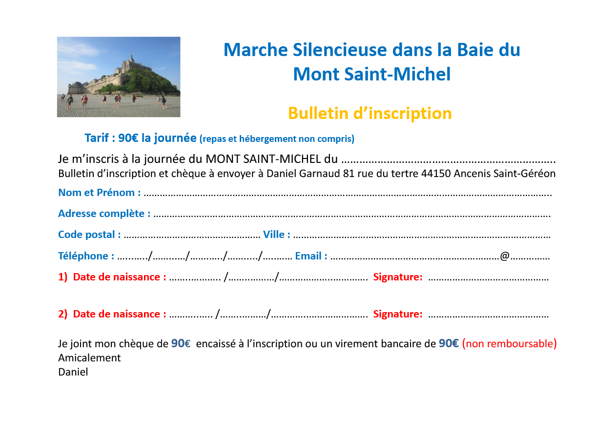Marche silencieuse dans la baie du mont Saint-Michel du lundi 8 juin. Départ du Bec d'Andaine à GENÊTS à 5h00.